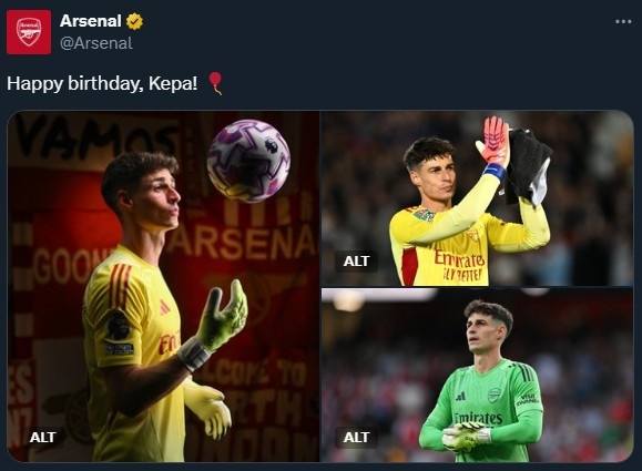 10月3日讯 今天是凯帕的31岁生日,阿森纳官推发文送祝福。